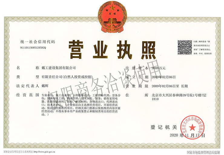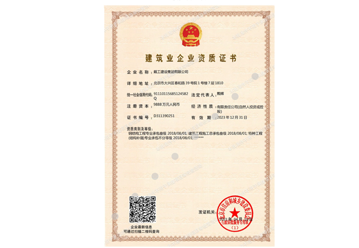 戴工建設(shè)集團(tuán)有限公司,創(chuàng)建于2009年,注冊資本9888萬元人民幣。公司位于北京市大興區(qū)。具有建委頒發(fā)的建筑裝飾裝修專業(yè)壹級,防水保溫工程專業(yè)壹級,建筑幕墻專業(yè)貳級,消防設(shè)施專業(yè)貳級,電子與智能化專業(yè)貳級,特種工程(結(jié)構(gòu)補強)專業(yè)不分等級,建筑機電安裝專業(yè)貳級,環(huán)保工程專業(yè)貳級,鋼結(jié)構(gòu)專業(yè)貳級,建筑工程總承包貳級,建筑裝飾工程設(shè)計專項甲級,展覽陳列工程設(shè)計與施工壹級,展覽展示工程壹級...更多>>